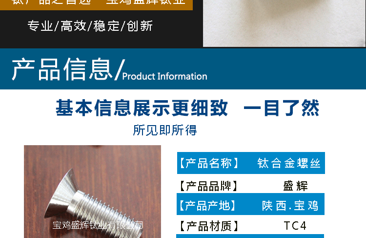 從細(xì)節(jié)出發(fā),站在專業(yè)的角度,始終如一堅(jiān)守品質(zhì)的最終使用價(jià)值,產(chǎn)品和服務(wù)同時(shí)送達(dá)是盛輝鈦業(yè)對客戶的承諾。寶雞盛輝,將以不變的摯誠,用心聆聽,貼心關(guān)懷,以至全至尊的服務(wù),與新老客戶攜手共贏!