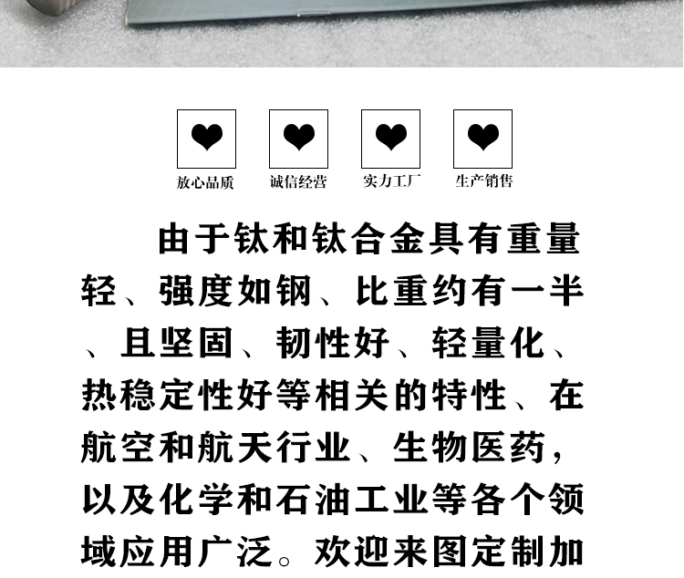 寶雞盛輝鈦業(yè)有限公司是一家主要從事鈦及鈦合金棒,鈦環(huán),鈦法蘭及鈦合金板材的高新技術(shù)企業(yè),公司提供鈦環(huán),鈦合金棒批發(fā),鈦環(huán)的生產(chǎn)工藝服務(wù),以人為本,質(zhì)量取勝為宗旨:18791863990,18740375975