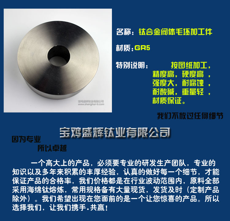 寶雞盛輝鈦業有限公司是一家主要從事鈦及鈦合金棒,鈦環,鈦法蘭及鈦合金板材的高新技術企業,公司提供鈦環,鈦合金棒批發,鈦環的生產工藝服務,以人為本,質量取勝為宗旨:18791863990,18740375975
